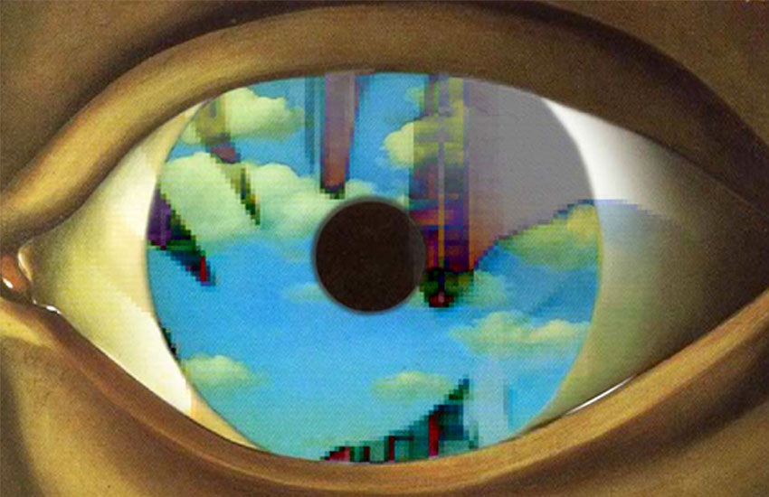 myParticipation=myMagritte is an art interface which demands the viewer’s constant attention. The viewer’s movement in front of the webcam triggers the video feedback system, and the software written by the artist integrates what the webcam sees into the image of The False Mirror, a Surrealist masterpiece by Rene Magritte. As a result of the motion detection, the highly stylized video image of the viewer and his/her surroundings will be incorporated instantly into the circular sky portion of the original painting, creating a new kind of surreal experience enabled by digital technology. The image on the screen will begin to fade back to a faithful representation of the original oil painting within five seconds after the motion detector no longer detects movement.